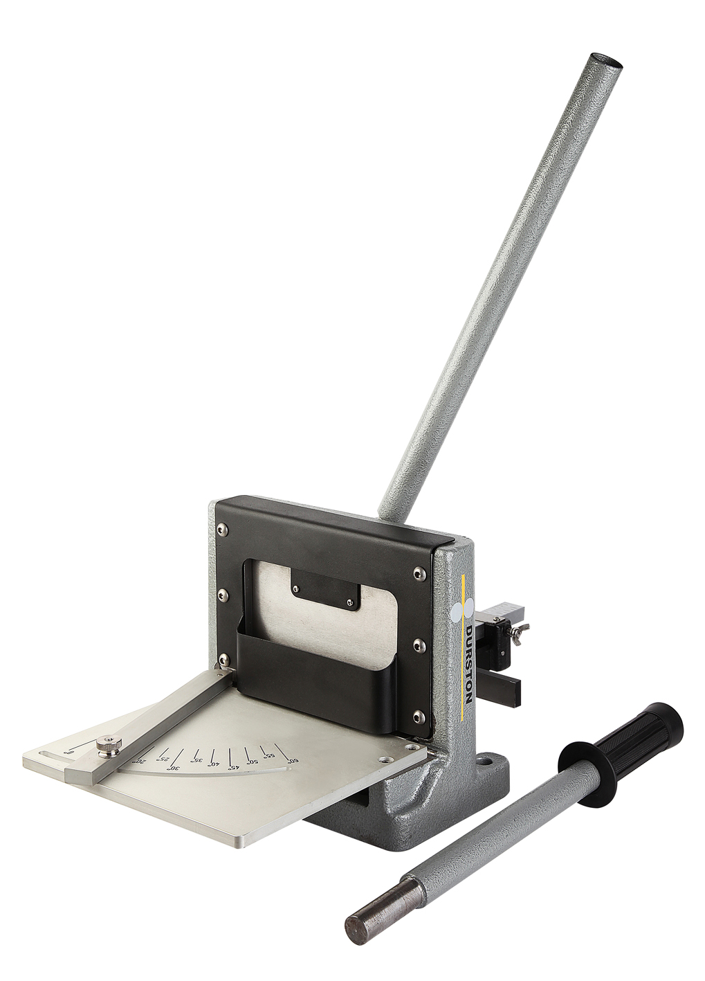 Die mittlere der DURSTON Guillotine Shears ist ideal zum Schneiden gerader Blechstreifen oder –stücke bis zu einer Breite von 160 mm. Dank dem auf der Schneidfläche aufgebrachtem Lineal und Winkellehre können Sie gerade und schräge Schnitte präzise durchführen. Es lassen sich schräge Schnitte bis zu 60° in 5°-Schritten schneiden. Der Schneidtisch aus Edelstahl stellt sicher, dass das Metall richtig eingeführt und angelegt ist und sorgt für gleichmäßige Schnitte und saubere Schnittkanten.