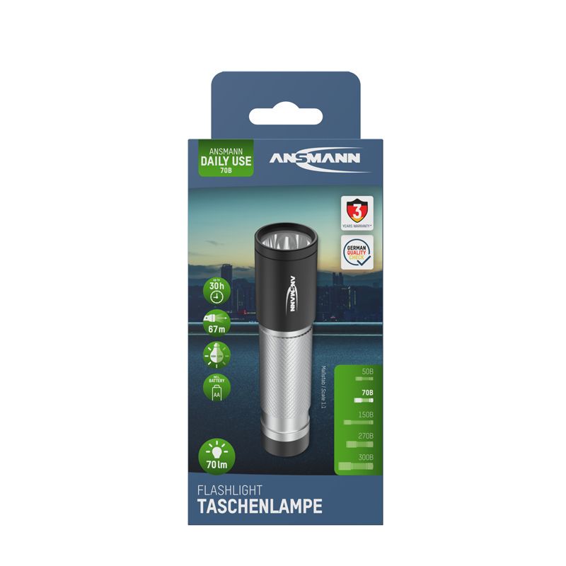 - Der Energieverbrauch der Daily Use 70B Taschenlampe ist erstaunlich gering.