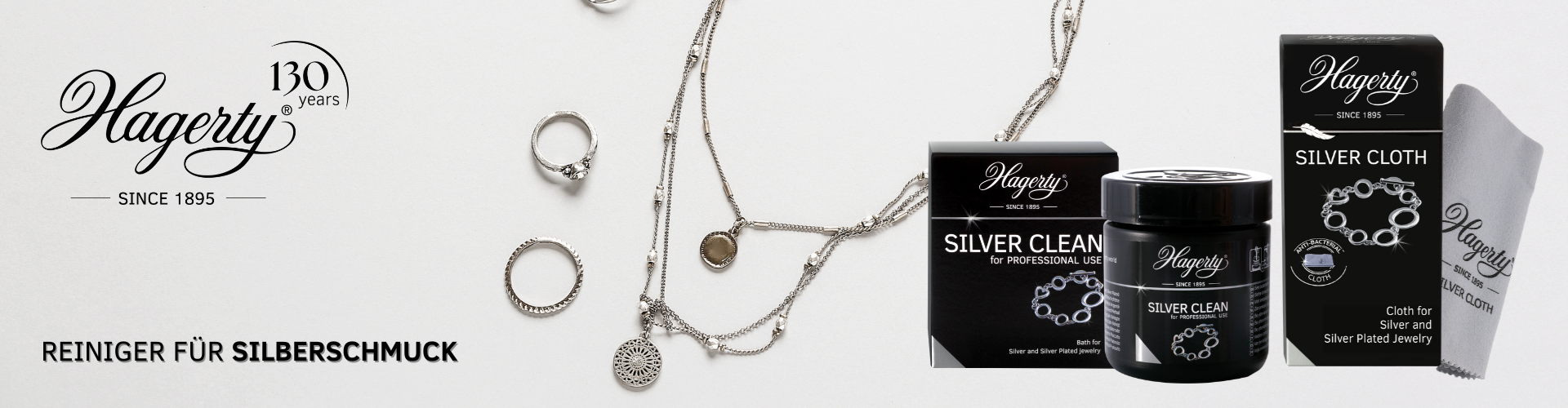 Die hochwertigen Hagerty Polier- und Pflegemittel für alle Metallarten und Edelsteine und sorgen für einen langanhaltenden Glanz und Schutz Ihrer Schmuckstücke.