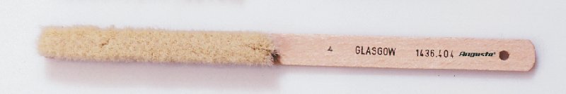 Handbürste mit Holzkörper zum Bearbeiten und Reinigen von kleinen Teilen in der Schmuck- und Uhrenherstellung und zur feinmechanischen Bearbeitung in Industrie und Handwerk.